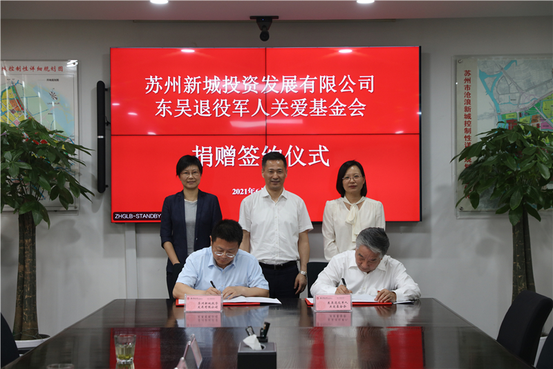 为深入贯彻落实习近平总书记关于做好退役军人工作的重要指示精神,积极响应市委市政府关爱退役军人、帮助退役军人解决“政策之外,情理之中”的困难,发挥雪中送炭的功能,6月11日上午,苏州新城投资发展有限公司与东吴退役军人关爱基金会举行捐赠签约仪式。东吴退役军人关爱基金会理事长张伟兴,副秘书长徐静艳,新城投资公司党委书记、董事长陈建斌,党委副书记、总经理高草原,党委委员、纪委书记楼颖等出席签约仪式。