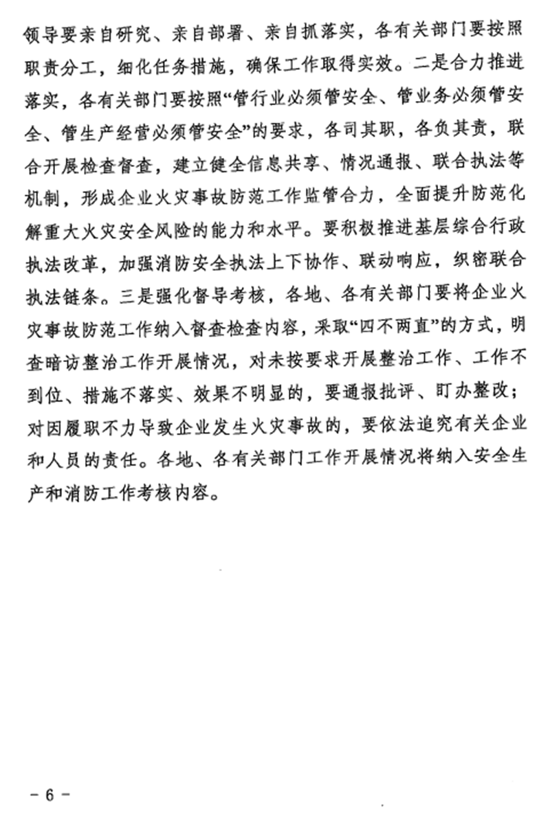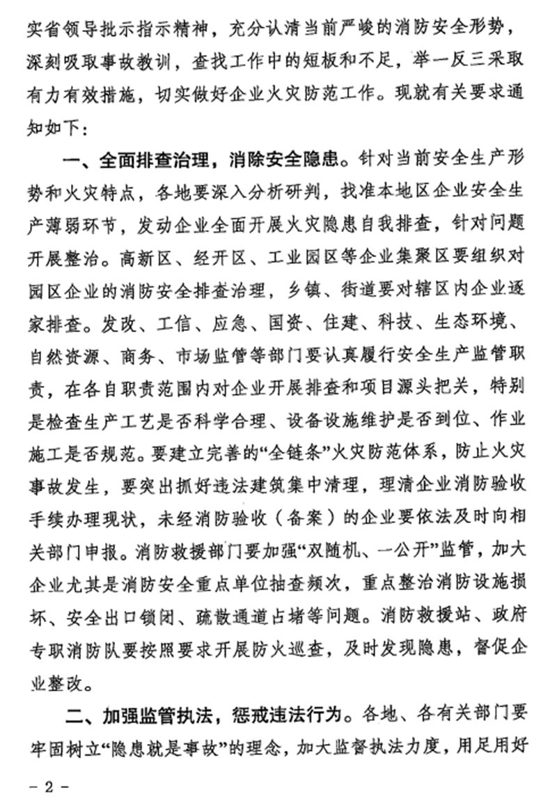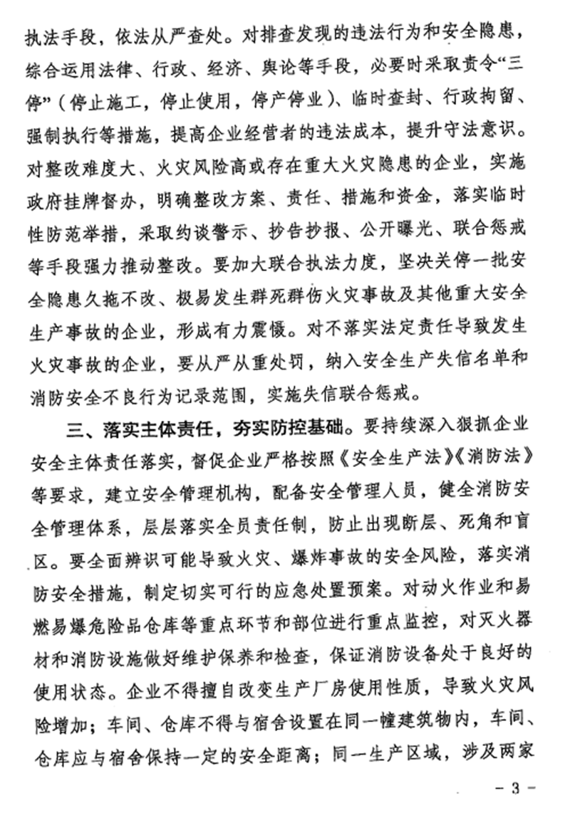 各单位要深刻汲取近期相关火灾事故教训,充分认清当前严峻的消防安全形势,进一步树牢安全发展理念,全面落实安全生产主体责任,深入开展火灾隐患排查整治,切实做好企业火灾防范工作。