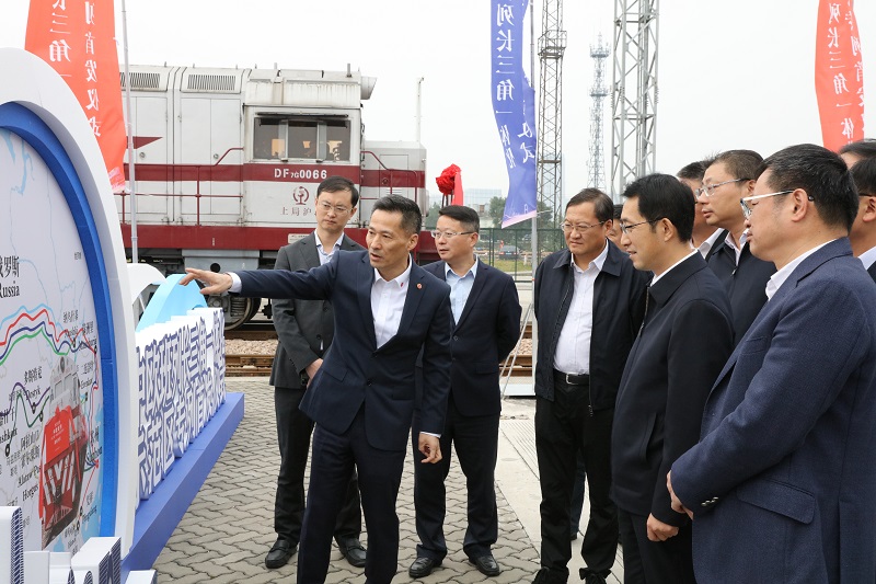 仪式后,吴庆文一行来到苏州新城投资发展有限公司,调研江苏(苏州)国际铁路物流中心项目运行情况,详细了解苏州中欧班列和多式联运发展情况。