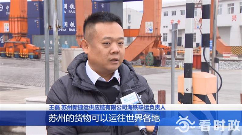 苏州新捷运供应链有限公司海铁联运负责人王磊介绍,货二线、货四线是目前苏州海铁联运班列的发运线,一条是发往洋山港,一条是到外高桥港,通过这两条线,苏州的货物可以运往世界各地。