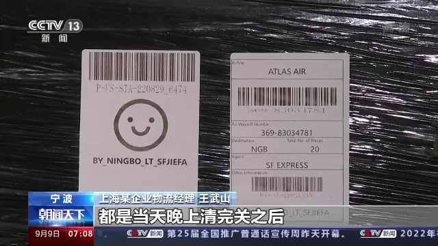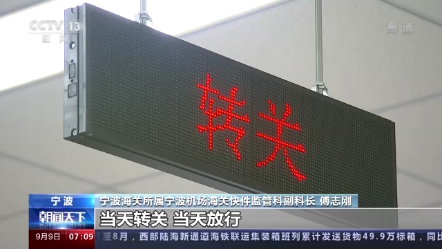 宁波海关所属宁波机场海关快件监管科副科长 傅志刚:我们针对性地调整机检和查验的时间,做到车辆一到就立刻进行通关验放,最终实现当天落地,当天转关,当天放行。