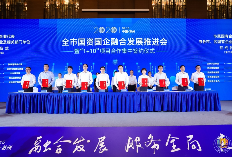 9月15日,全市国资国企融合发展推进会暨“1+10”项目合作集中签约仪式在苏州日航酒店举行。据了解,今年6月初,苏州市在全国率先推出国资国企“1+10”项目合作机制。近四个月来,合作项目数量达到102个,预计投资规模达到1145亿元。