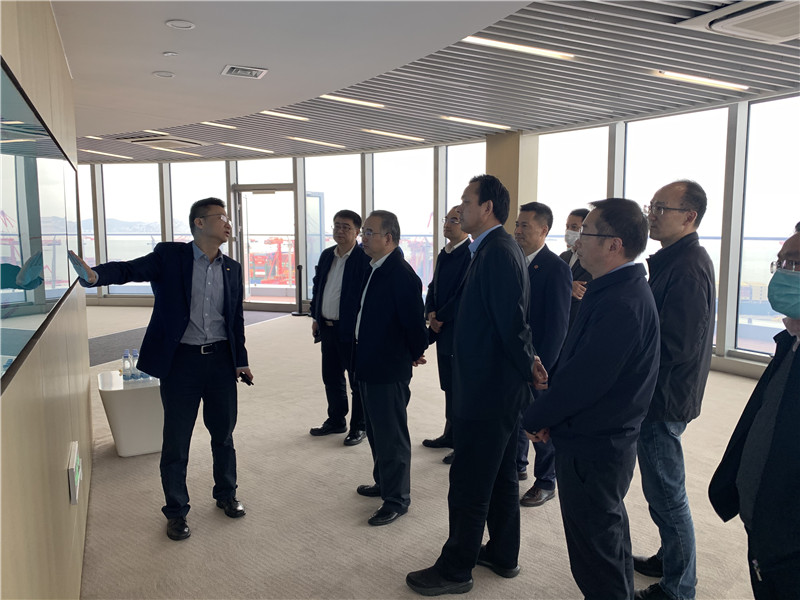 在临港自贸新片区,盛红明一行现场考察了上港集团洋山四期自动化码头,听取上港集团副总裁张欣对码头的详细介绍。该码头是全球规模最大的自动化集装箱码头,设计年吞吐量630万TEU,总面积223万平方米,共有7个集装箱深水泊位,配备自动化箱区61个,非自动化箱区8个(危险品和超限箱区)。通过上港集团自主研发的自动化码头生产管控系统,可实现桥吊远程操控、堆场装卸及水平运输等作业的无人化、自动化。