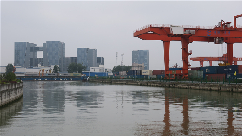 在江苏(苏州)国际铁路物流中心现场,调研组详细了解国际铁路物流中心规划、建设、运营情况,苏州中欧班列、水公铁多式联运的发展状况,以及上海汉唐航运124TEU河海直达集装箱船的运输模式。