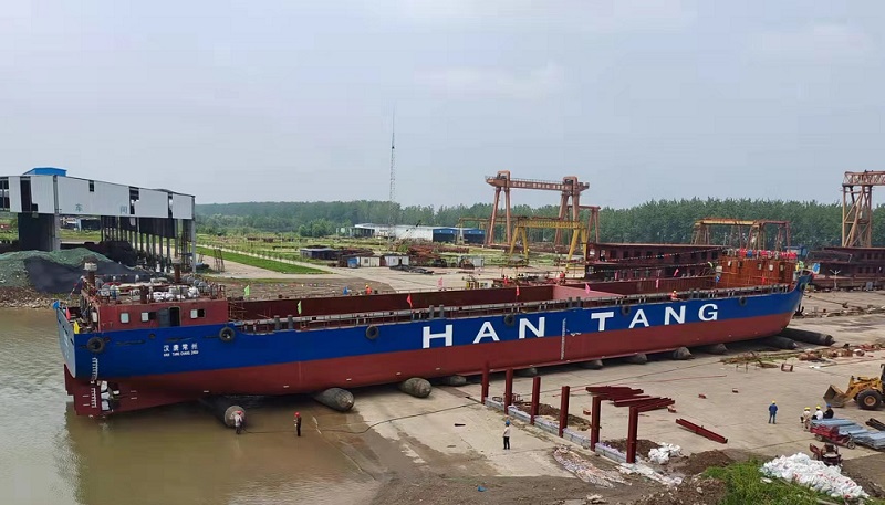 6月13日,上海汉唐航运有限公司(上海汉唐物流服务有限公司、苏州新城投资发展有限公司、上港集团长江港口物流有限公司合资)建造的120TEU河海直达集装箱船“汉唐常州”轮顺利上水。