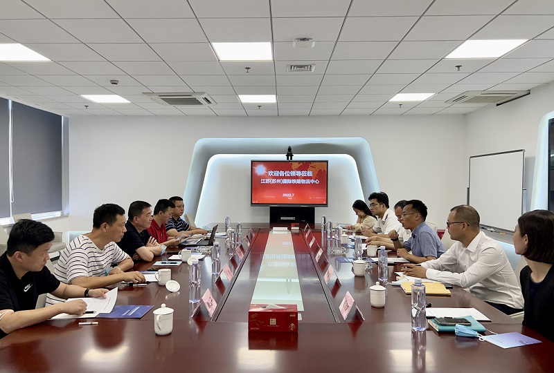 7月6日下午,杭州萧山国际机场航空物流有限公司副总经理黄永虎一行考察江苏(苏州)国际铁路物流中心并交流洽谈。新城投资公司党委委员、副总经理金晓飞,新成物流集团总经理刘利、副总经理徐颉等陪同考察,并邀请苏州海关相关人员共同座谈交流。