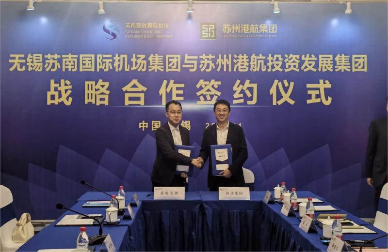签约仪式上,陈建斌代表苏州港航集团向苏南机场集团长期以来给予的关心支持表示感谢。他说,随着长三角一体化发展上升为国家战略,全省区域协调发展大格局深入推进,苏州、无锡之间也在加速推进一体化发展。苏州港航集团与苏南机场集团携手加强战略合作,既是全面贯彻党的二十大精神和习近平总书记关于推动长三角一体化发展重要讲话指示精神的实际行动,也是落实苏州、无锡两地市委市政府关于推动苏锡一体化发展的具体举措。苏南硕放国际机场是苏州人和苏州企业家门口的机场,对于长三角地区货物的中转集散、进出口贸易等有着重要的推动作用,对于促进区域产业结构转型升级具有重要意义。2002年,苏州在全国首创“SZV虚拟空港”业务;2022年,苏州港航集团在此基础上创新开展陆空联运业务,首年即完成进出口货物超5700单、3000多吨。