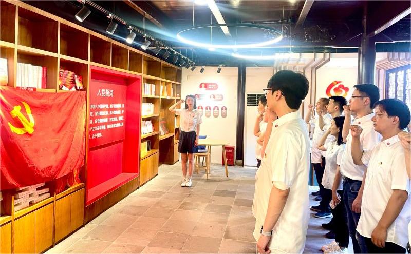 在中国江村文化园(费孝通江村纪念馆)、柳亚子纪念馆、吴江崇德教育馆,支部全体人员倾听现场讲解,参观图文展示,详细了解了江村发展变迁与费孝通先生“志在富民”的崇高理想,领略了南社创始人柳亚子先生的革命精神与爱国情怀,学习了当地清正廉洁、崇德向善的家风家训与优秀文化。在吴江崇德教育馆现场,支部举行了新党员入党宣誓暨老党员重温入党誓词仪式,党员们在深受教育的同时也备受鼓舞。