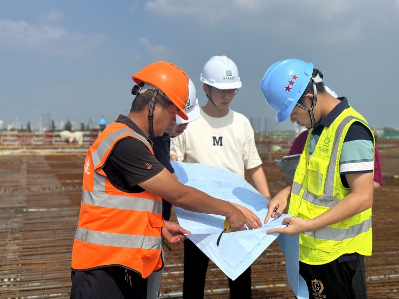 集团安全和质量管理部员工们迎着烈日高温,奔赴各项目施工现场,对照施工图纸,仔细检查工程项目安全生产和质量工作,保障项目建设有序推进。