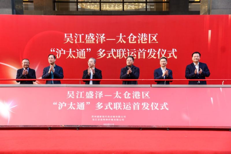 11月20日下午,吴江盛泽—太仓港区“沪太通”多式联运首发仪式在盛泽京奕集团顺利举行。苏州港管委会副主任、太仓港口管委会主任邵建林,吴江区人大常委会党组书记盛红明,吴江区委常委、吴江高新区党工委书记、盛泽镇党委书记沈春荣,吴江高新区管委会副主任张建华,苏州港航集团党委书记、董事长陈建斌,京奕集团董事长陈克勤等出席仪式。