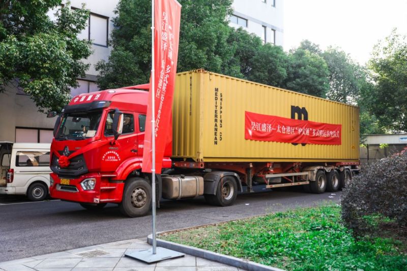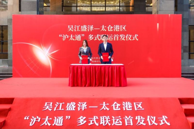 仪式上,苏州港航集团下属苏州盛新现代供应链有限公司与京奕集团签署合作框架协议。随后,吴江盛泽—太仓港区“沪太通”多式联运首班货车正式发车。