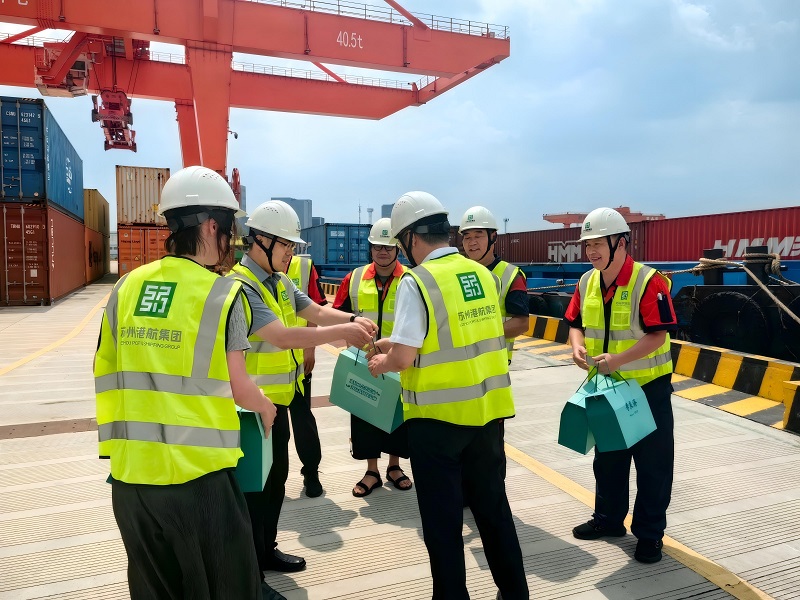 三伏盛夏之际,骄阳似火。8月5日,苏州市总工会副主席吴洪斌来到江苏(苏州)国际铁路物流中心项目现场,开展“送清凉”慰问活动。此次活动为坚守岗位的一线职工送去清凉物资与暖心关怀。港航集团工会主席顾勇参加活动。