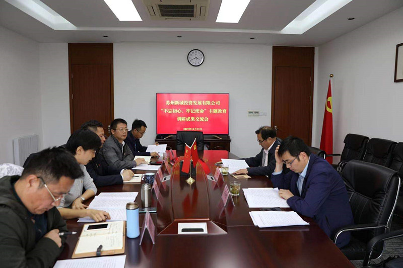 根据新城投资公司“不忘初心、牢记使命”主题教育活动部署安排,11月12日,公司党委召开主题教育调研成果交流会,公司党委班子全体成员交流了调研工作基本情况及调研成果。市委主题教育第十二巡回指导组组长沈建平等到会指导。