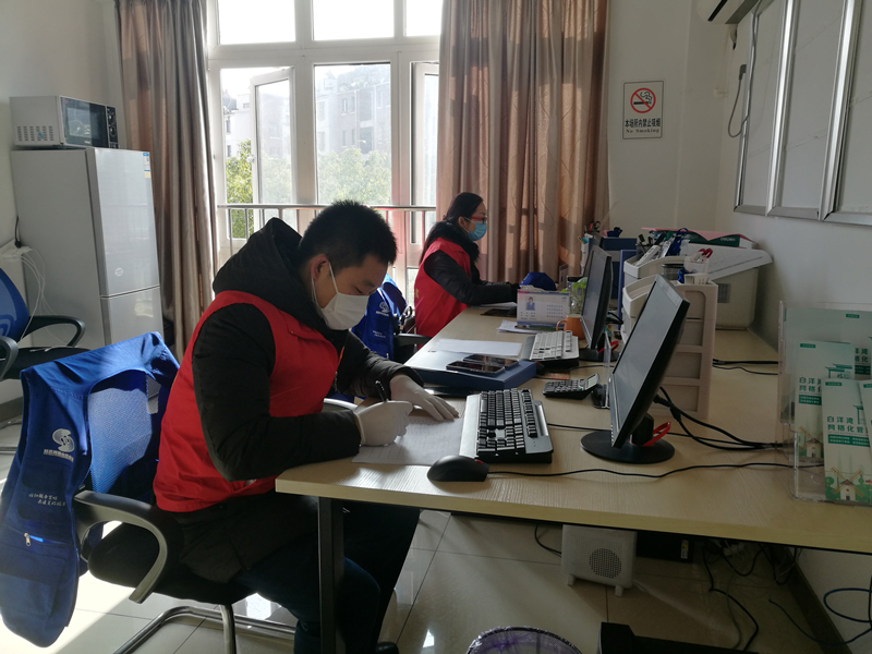 春节期间,全国各地陆续打响新型冠状病毒感染的肺炎疫情防控阻击战。第三党支部共建单位白洋湾街道玉景湾社区共有3996户家庭,有来自全国各地的居民1.6万余人,是疫情防控的重点区域。连日来,玉景湾社区工作人员每天对过节返程居民进行疫情排查防控,工作量大,人手严重不足。